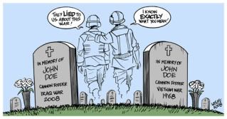 His whole life we have been engaged in the wars of occupation in Iraq and Afghanistan. Thinking back over my lifespan, it seems we have been interfering (covertly and overtly), invading, bombing, overthrowing governments and generally spreading death and destruction for profit. As Phil Ochs sang; "We've shot and bombed and burned our way across the world and back and the blood money keeps a'rollin' in"
